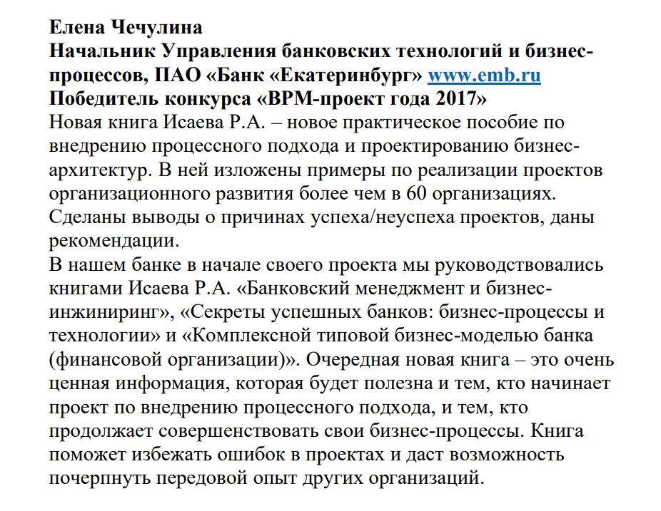 В декабре 2013 года и в январе 2014 года для сотрудников банка проводился семинар ведущего российского эксперта по банковским бизнес-процессам и бизнес-инжинирингу, члена Комитета по стандартам качества Ассоциации российских банков Романа Исаева.